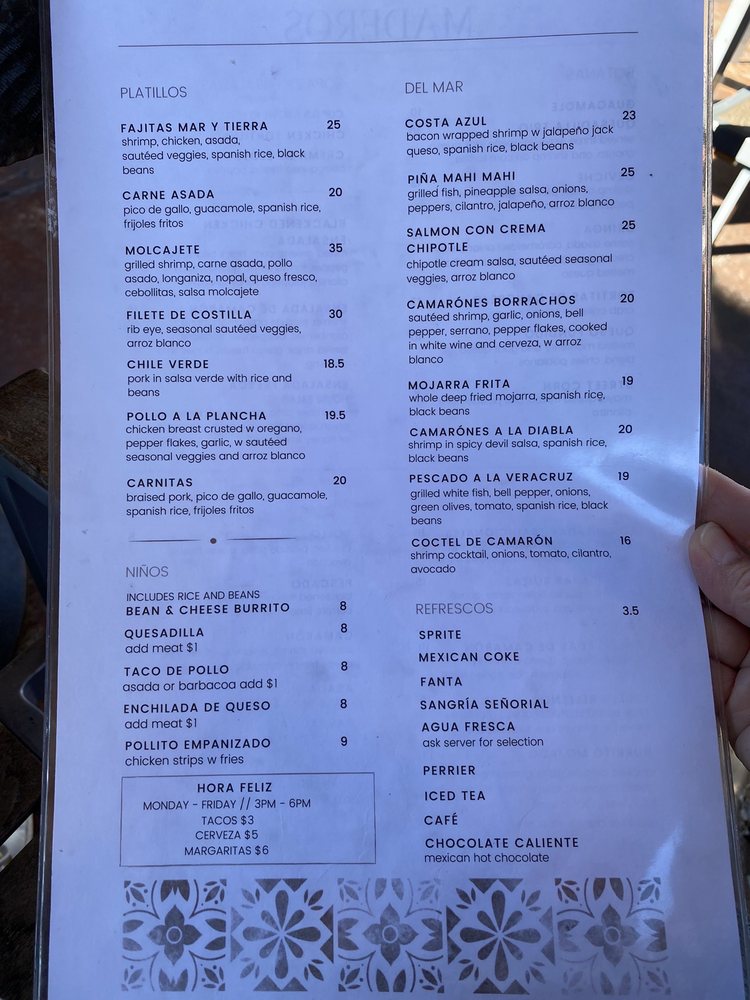 Maderos Cocina Mexicana is a trendy and classy Mexican restaurant located in Redondo Beach. Offering a variety of dishes, including vegan and vegetarian options, Maderos takes pride in its attentive service and fresh ingredients. Customers rave about the flavorful guacamole, salsa trio, tacos, chile relleno, fajitas, and margaritas. The restaurant provides a pleasant dining experience with outdoor seating, quick service, and a welcoming atmosphere. With positive reviews highlighting great food, excellent service, and a nice selection of menu items, Maderos Cocina Mexicana is a must-visit for those craving authentic Mexican cuisine. From the moment you walk in, you'll feel like a valued guest, ready to enjoy a memorable meal.
